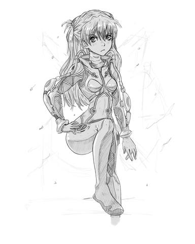 I started watching Evangelion and OH MY GOD IT'S REALLY INTERESTING! Also many people seemed to call shinji a sissy and a weakling but I can't really see why because imo he's my favourite character of the series and I can relate to him most. Well anyway I really wanted to draw some of these cool bodysuits they wear but Asuka's was the easiest to draw so I decided to draw her! I kinda tried adding characteristics from Nge's artstyle and I had a lot of fun drawing it ^^ It's nothing too complex because I have other things that I need to finish as well. I am planning to upload a sketchdump soon too, because I've drawn countless sketches lately. Anyway that's it for now. Hope you like it ^^PS: OUR NEW SCANNER HAS EPIC RESOLUTIONS JESUS