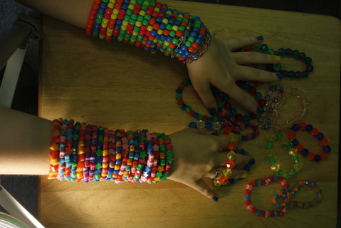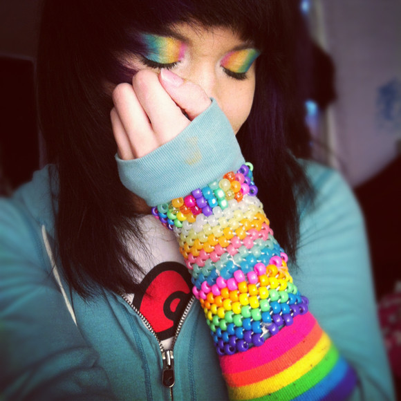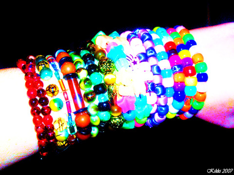 kandi as in kandi kids. ravers! PLUR [peace love unity respect] and all those happy things.