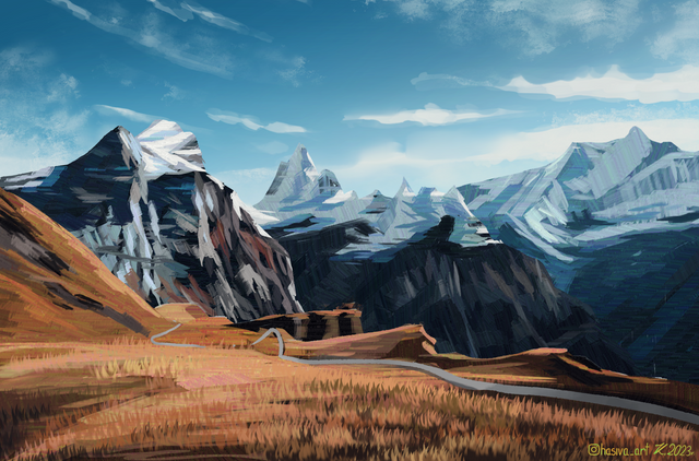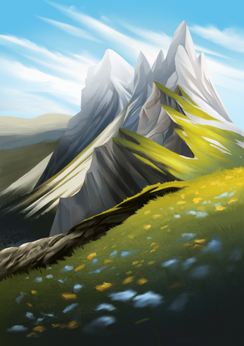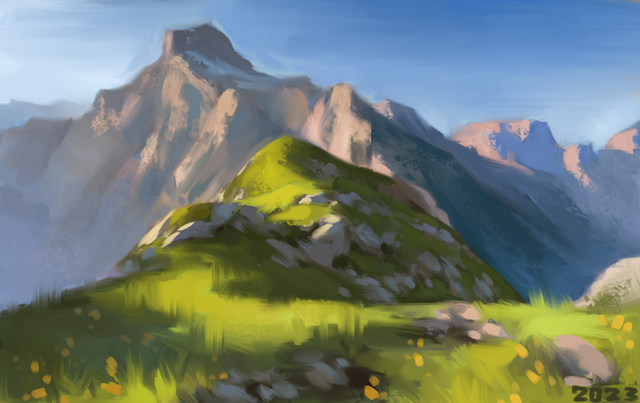 #clouds #digitalart #grass #landscape #mountain #mountains #rocks #valley #art