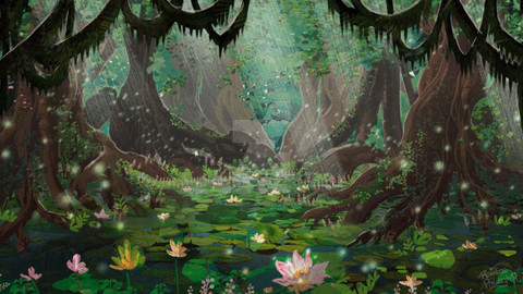 #branches #forest #green #leaves #mystic #naturescape #plants #rose #searose #trees #water #waterscape #wood #artwork #conceptual #digitalart #digitalpainting #flowers #nature #swamp
