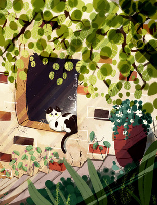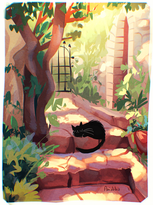 #animal #cat #daytime #digitalart #garden #kitty #rainbow #sleep #art