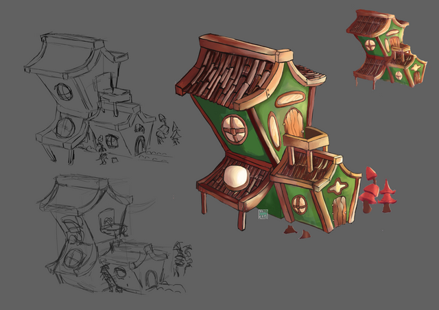 #artwork #axe #barrel #conceptart #design #digitalart #fantasy #forest #house #illustration #items #magic #rainbow #stones #stylized #tree #trees #wood #magicalforest #art