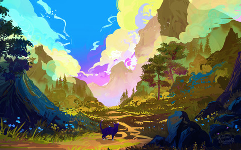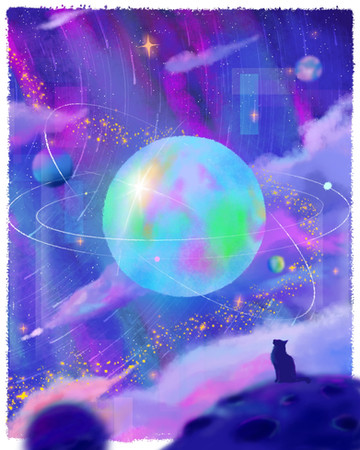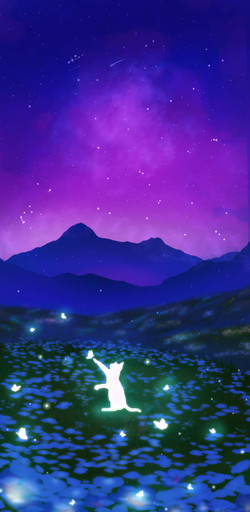 #cat #digitalart #fantasy #kitty #landscape #moon #night #star #stars #tree #art
