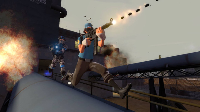 I'm partly to blame for this, the soldier's part way through a diagonal-running-reload animation, but at the point in the timeline the picture was taken he looked ridiculous so this is my vain attempt to fix that.