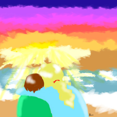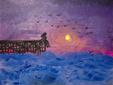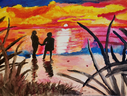 I was tasked with making a painting for the "end" of my therapy story. I painted myself and my husband, facing the future in a positive way.I know I'll be alright in the end.