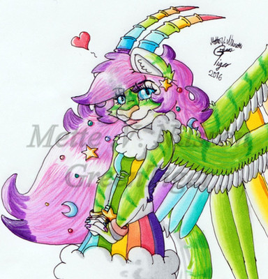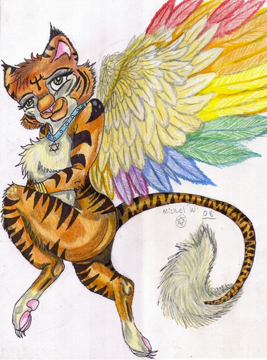 I made up this outfit for the Spring Fest on Furcadia and it's also the first time I've drawn her with wingzRelated content