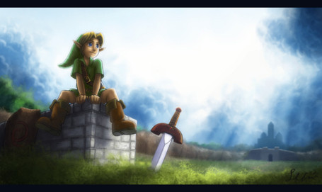 Link!! He come to town!!! Come to save ... the Princess Zelda!! XD Wow, that art piece is very well done!!! I lurve it!! ^^ <3