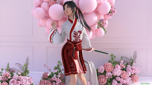 Darin (apparently, the name of this girl) at her house!Recently, most of my 3D work are edited in Photoshop in order to have blu-ish white point, which looks surreal and I like it.