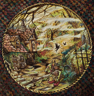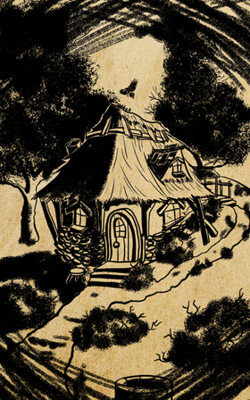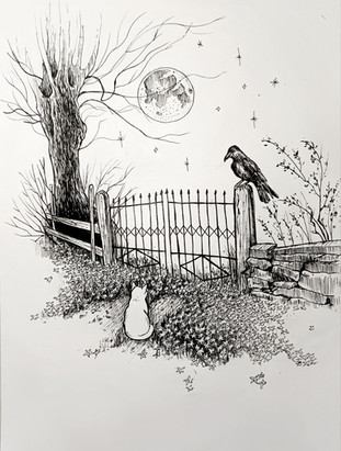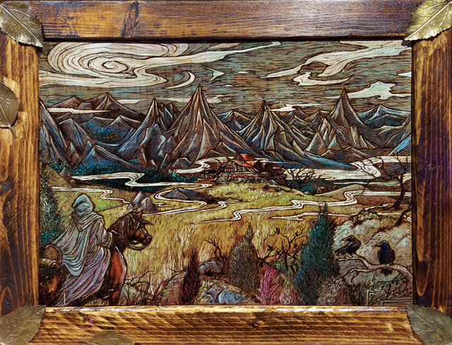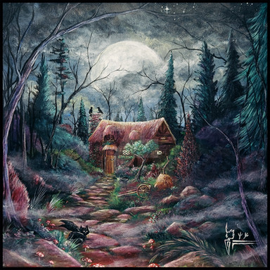 #cat #fairytale #magic #witch #cottage #crow #pyrography #twilight #woodburning #rainingcrow