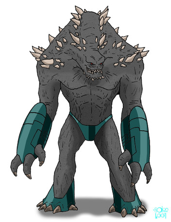 just my design for doomsday. I wanted him to look not only more alien, but more like a biological weapon. the gauntlet on his arm is meant to be a programming device, which interlinks and allows him to transform that hand into various weapons. Read my explanation over at nostalgia-reboot.weebly.com for more info.fan art of dc character
