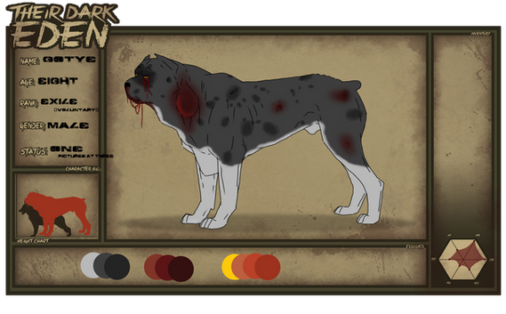 Chepi was born into Eden, with her twin sister Tala. (Only difference is the eye color, which is from her mom's side) They grew up in the nursery happily, but when the became apprentices and found out what was going on Chepi feel into a semi-depression. She felt very sorry for the infected dogs out there. They both wanted to become physicians so they could find a cure, and help others. Chepi also met a scrapper one day when she had to go on a convoy. His name was Damon, he was a fellow apprentice who was a Golden Lab Mix. Both his parents were alive, but were abusive, so he often stayed with Chepi, Tala, and their parents. Chepi always took care of him and his wounds, and soon Damon fell in love with Chepi. When they all became adults he asked Chepi to be his mate. Chepi loved him as a brother but nothing more. So the time came when she had to go outside into the wasteland. Damon went with her like he normally did, but this time was different then most. A waster came and started to attack Chepi. Damon ran, saying its what she gets for not loving him in return. A stray Skat came along and scared the waster away, Chepi sneaked around it and ran back to Eden in tears, she knew she was a goner, and had lost her now dead parent's scarf. She had love scarfs and owned many. When she got to Eden Her and Tala gave each other things to remember each other by, known one of them would die before the other. Tala gave Chepi her cross necklace, saying as long as Chepi was infected there was no god. Chepi gave Tala her favorite scarf a light blue one. She wore a dull beige scarf to hid her wound on her neck, not wanting any waster to see it. It was a mark of doom, and the mark of death. Which all wasters bore. No need to sow it off. After sometime Damon found Chepi after running out of Eden like a insane dog. He begged Chepi to forgive him, but only so he could attack her once more. And the wound still hasn't healed and never will. Chepi now broken hearted travels alone, trying to find someone she can trust, other than God.