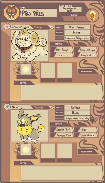 Aaron was born a Rockruff in one of the metropolian cities from the Western Continent. It was only until his parents divorced and came the Great Depression that drained his family’s wealth. He grew up living a hard life. Struggling with money and running away from huge debts, he was caught up in one of the nations in the North. His life couldn’t get any worse at that point. Then he met Faith, a dazzling fighter and performer, who kindly got him back on track. After some conflicts and deals, the two now travel together towards their goal.