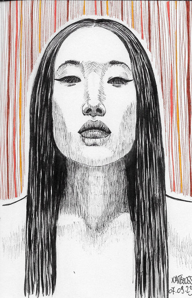 #asiangirl #beautifulgirl #browneyes #girl #girlportrait #inkart #inkgirl #lips #maidenjapan #noai #traditionalart #traditionaldrawing #artoftheday #notracing #new #storytellingart #artistondevinatart #balckhairedgirl #notoai