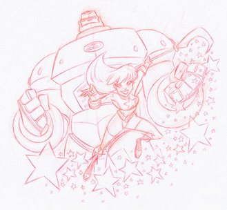 Sketch commission for Bill D! He requested two characters from the show Legion of Super-Heroes, Shrinking Violet and Bouncing Boy, in a surf-like pose. Fun characters, fun to do :3Related content