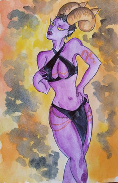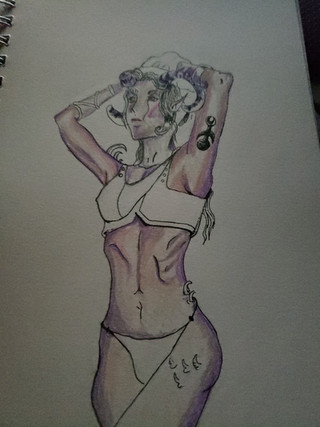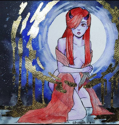 This is DΓ©sir, a human-like creature featured in a story I'm writing on Wattpad. I painted this for the cover for that story, and as a reference for what she looks like.Maybe I'll eventually make a Patreon or something where I'll post the NSFW versions of these pieces.