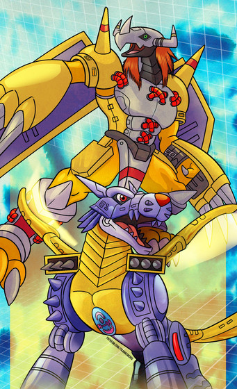 part one of my Adventure/Savers Agumon(s) series, this one featuring the Ultimate level of Agumon's evolution - Metalgreymon and Risegreymon from Adventure and Savers respectively.to come:
