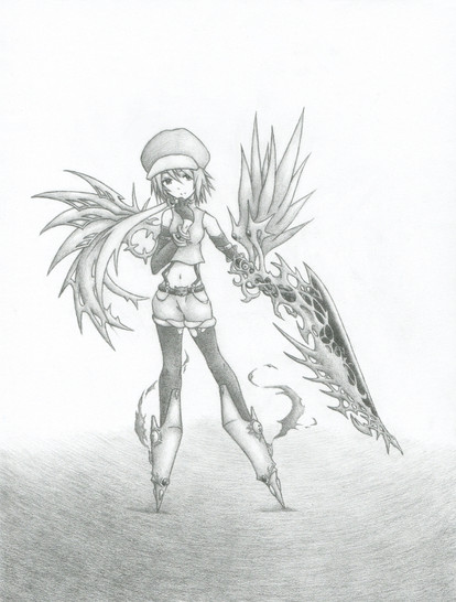 First thought, shiny XD I dunno why, cause it's not really shiny at all, but still! Shiny XD The wing looks really cool and it probably took a long time to make it look that way xD Each individual line makes it look sweet. Pants are all leathery and the shading shows the material well.