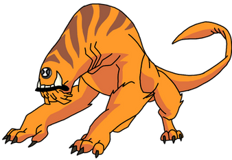 WILDMUTTNow Wildmutt is more bulky and strenghty and his belt has a translator which omnitrix has given and he can activate when he wants. [WHEN HE USES THE TRANSLATOR THE OMNITRIX WILL GLOW GREEN].
