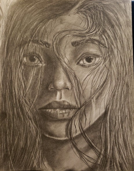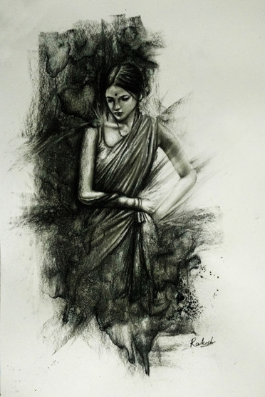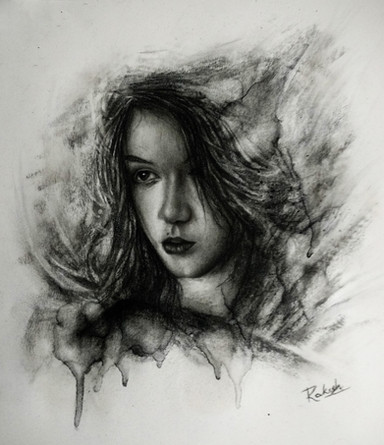 Materials used: 2B Mechanical Pencil, 9B pencil, Kneaded eraser, Paper Napkin, Blending stumps, Soft Charcoal Cretacolor, Black Marker