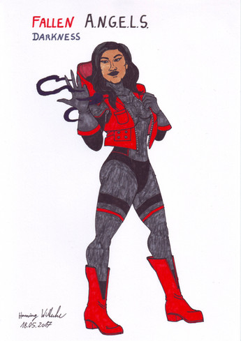 And, yes, her name is a modified version of Mystique's (X-Men) real name, Raven Darkholme. Though I've modified it since I drew this years ago.