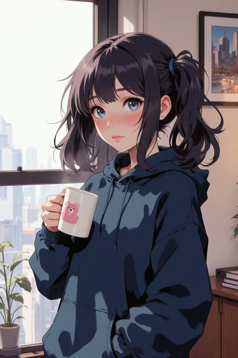 franky-otaku - Anime girl wearing black camisole and pink shorts, [🤖]