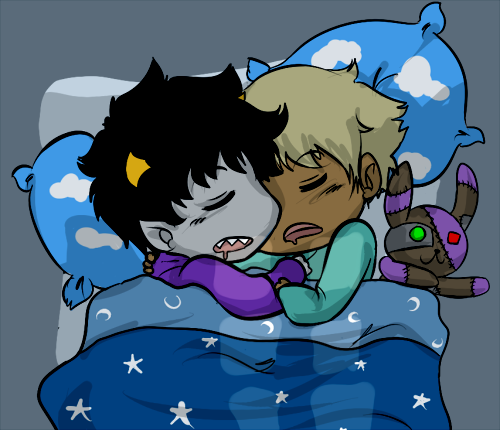 KARKAT WILL HAVE NIGHTMARES SINCE HE'S NOT SLEEPING IN SOPOR SLIME. SO HE WILL CUDDLE UP TO SOLLUX IN HIS SLEEP. AND SOLLUX WILL HOLD HIM. DEARLY.