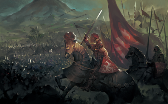 The Red Knight RidesIllustration for 'Elminster's Forgotten Realms'.