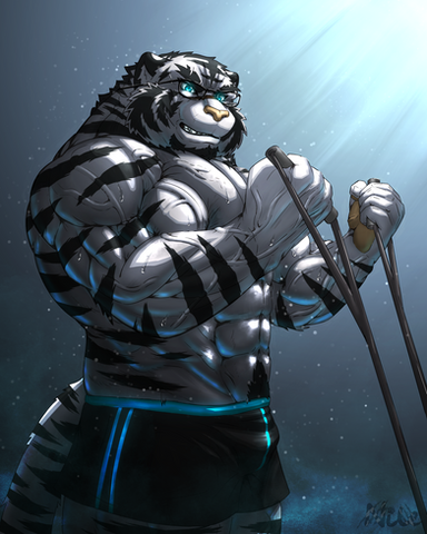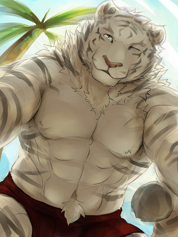 #anthro #big #blushing #buff #cat #fluffy #furry #kemono #muscles #ralph #tiger #white #cinnatree #ralphthefeline
