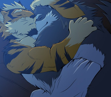 *raises hand to be the next one to be hugged* :3 Dude really, you're the best at making these cute scenes with strong looking charas, I love the contrast between the two things. He looks very lovely and tender hugging the pillow like that. gosh, too adorable for me!