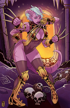 Love the sword over her shoulder! Makes me think its works like a chainsaw.