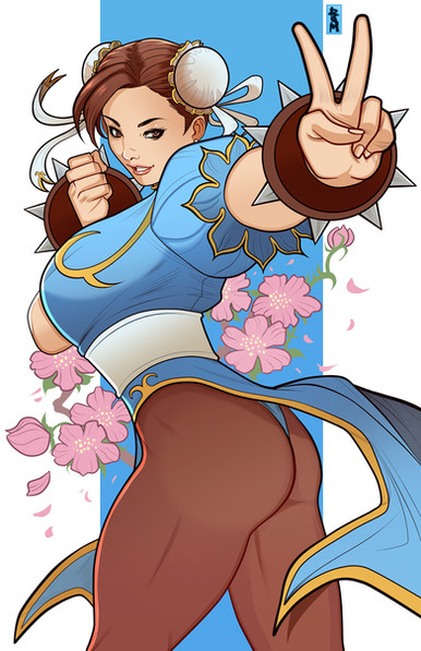 Pin up de Chun Li de la saga de juegos de lucha de Capcom Street Fighter, su primera aparición data de 1991 en el clásico "Street Fighter 2: The World Warrior".