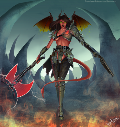 #arena #coliseum #commission #demon #demongirl #fantasy #fantasycreature #warrior