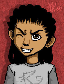 Haha~ Sorry, another Facebook graffitiLolz~ I like The Boondocks >w> I used to read it in the paper. I'm not an obsessed fangirl but I really love the style of the show~~ (dude and the producer has a dA?!??[link] ) So, here's a Riley fanart! Sorry bout the off thumb/hand. There's only so much you can fix on one layer orz;