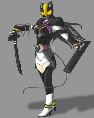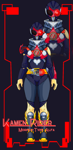 Kamen Rider Matrix (female) who uses the UnionDriver, an original Driver that can use two Keys at once for forms similar to Beast. Her base form is 'Adapting Canis' with the Ability: Evolve.