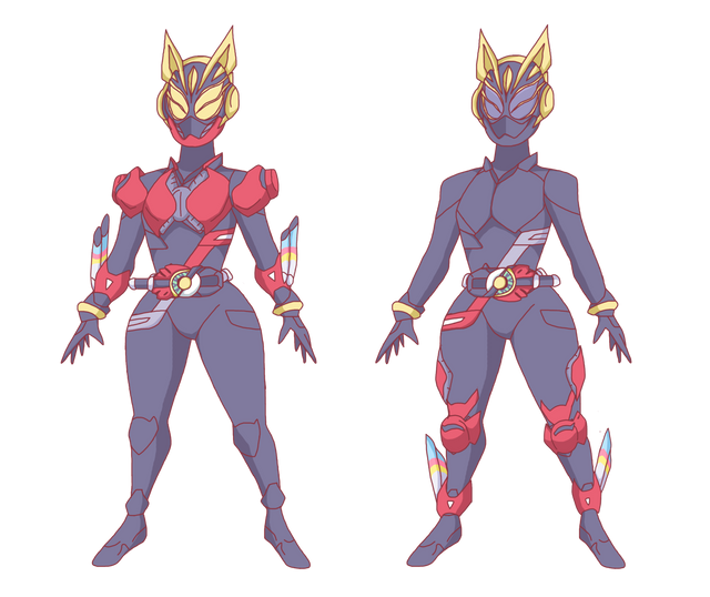 Phew. What a trip. Alright so I'm digging the physique on this one quite a bit as she is a little "thicker" than some of the other girls, and I mean that in a good way. It could just as easily be "thiccness" under the suit as it could be muscle, which would be great for a rider themed around building stuff. The pose is...alright. I mean it does it's job fine but feels feminine in the wrong ways for some reason. (Her feet being turned in and her left hand being turned up) I don't know, just wish she exuded more confidence or something. That aside her actual shape is great and I really like the dark lines through the suit. The attention to detail is really amazing! I wasn't sure what you could possibly do to feminize such a complex design but you did an amazing job of giving a lady the Build Driver and sending her into the fold. Amazing job!