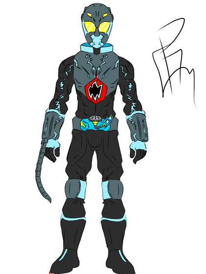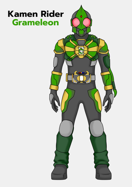 But instead of a dragon thing wrapping around him to form the armor. He has a Chameleon Pla (Like those small Pla Monsters from the Wizard series)