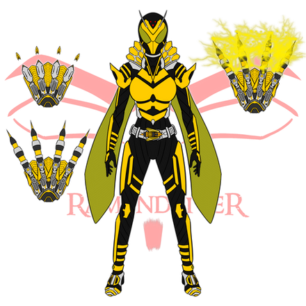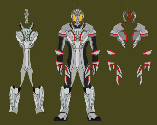 Kamen Rider Centry or Project NokosaregumoIs from a collaboration of humans and native worms that wanted to create battle ready fighter by creating an army of sentient Zecters. There would be no need to train soldiers because once the Zecter attaches to a host, the Zecter themselves would be guiding the host on how to fight effectively against the opponent.
