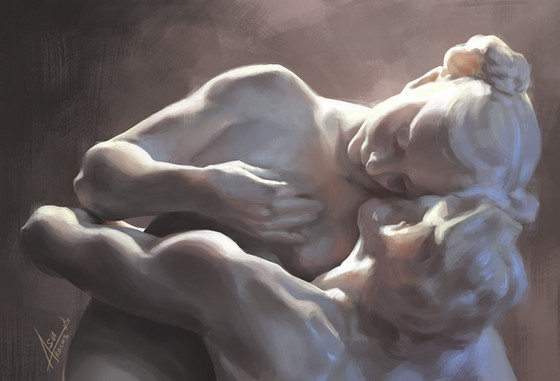gosh, your shading is perfect! and ugh, that hair! All of it is so well done and I love the composition, the figures are beautiful. =}