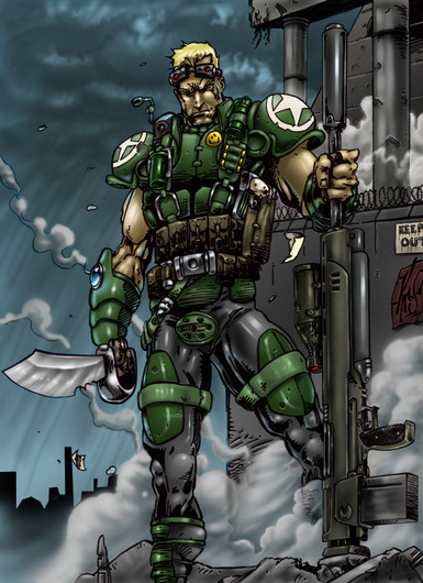 SABERTOOTH from the X-Men comics.Always liked Sabertooth. He is the perfect enemy for Wolverine. I been doing many Vietnam short films lately so I decided to draw Sabertooth looking like he is part of the Vietnam War. I like the way he came out and Hannha's coloring just adds more drama to the piece.