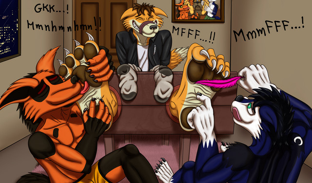 #brushes #celebration #feet #furry #hyena #laughing #male #painting #paws #soles #tickling #toes #wrinkles #ticke #antrho
