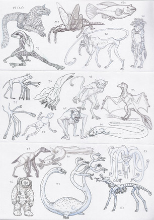 Nice! I generally have no problem with coming up with names, in case of doubt I just hit a few random letters and see how those can be edited into something workable ('Idrath' is one such example). I'll see if I can include some of your suggestions, but I can't promise anything, as these aren't final designs by any means.Β Some willΒ be changed and rearranged laterΒ and some of those names could end up for individuals rather than species, or for completely different designs altogether.