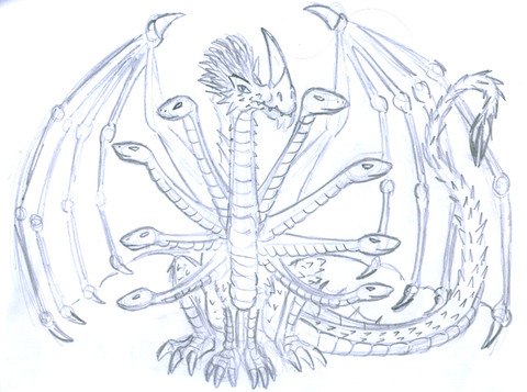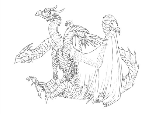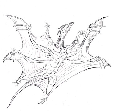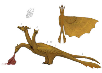 While Ghidora was the incentive of the idea, it's not really supposed to be him, just some ideas about how a three-headed creature would make sense. I will draw another of such ideas in some time, that one will be a modular organism.
