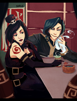 This is an amazing painting, and your friend is a really talented poet! I just love the sense of movement around the characters that are still, it indeed feels like the world stopped for them! The rough painting artstyle really gives to that sense of motion, as well as the details for the immobile characters! Very lovely, there's something dreamy and romantic about that piece of art, it's wonderful!