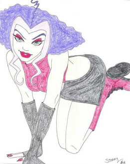 A very old picture of Jynx from Teen Titans I did....I kinda messed up on her hand as you can see....she's still one of my favorite designed characters on the show.....
