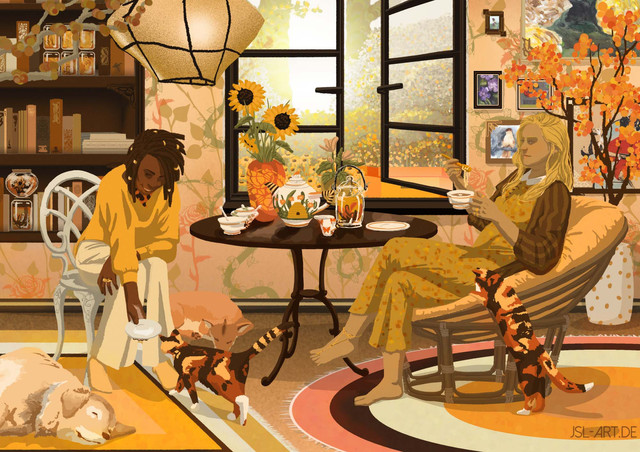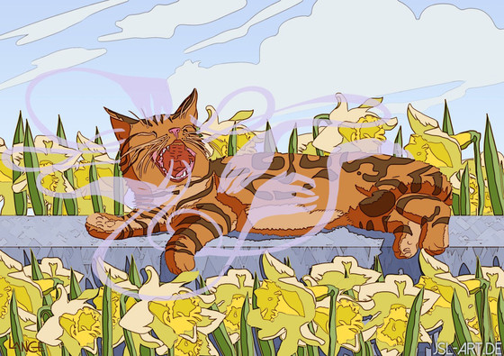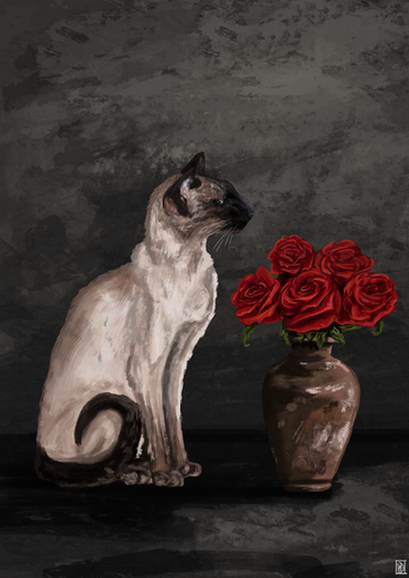 Study, 20×30cm, acrylic and coloured pencils on canvas board. From my Yellow Rose Cat studies. This one I had been looking forward to most, even if the pose and composition were not actually my favourite from the set, but I think the simplicity really works, and it gets closest to the cosy, homely feeling I was going for. It's painted on canvas-textured painting board; I paint mostly on paper so these surfaces that allow the paint to stay open for longer always need getting used to for half an hour. It was quite helpful for the soft shadows and helped with the plaster texture.