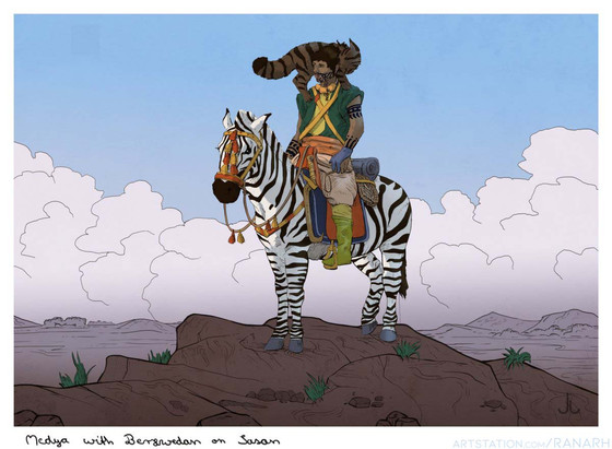 Last year I worked with Jon Hodgson and Kalin Kadiev of Chaosium on two RPG books in the Glorantha setting. They now appeared in the books The Smoking Ruin and The Pegasus Plateau. www.chaosium.com/the-smoking-r…The centaurs keep their distance as they follow the adventurers along their path to the city. It was fun to make sure they don't all just stand there, and how centaurs would have both horse and human habits.