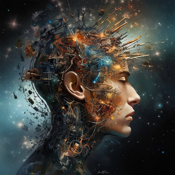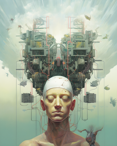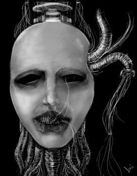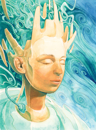 #acrylicpainting #blue #cyberpunk #future #glowinthedark #mixedmediaart #portrait #programming #traditionalart #digitization #computer #papierfreiesbüro