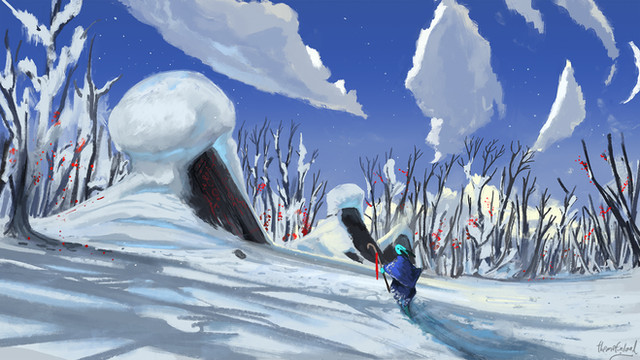 Great work, I especially like the colour and shape choices for the plants, seems otherworldly and whimsical.