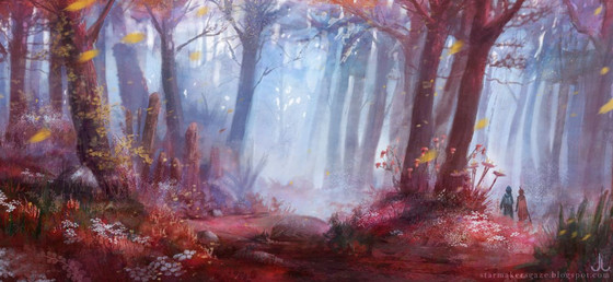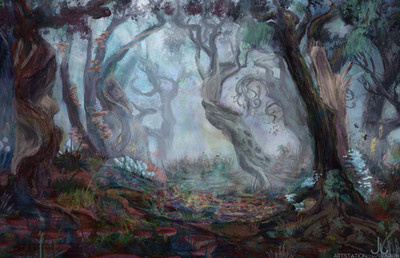 Thanks! The original sketch had a turquoise/orange scheme that I really wanted to keep because it's so unusual for a forest. Maybe I should start doing some more regular green forests again though, and not always use every crayon in the box