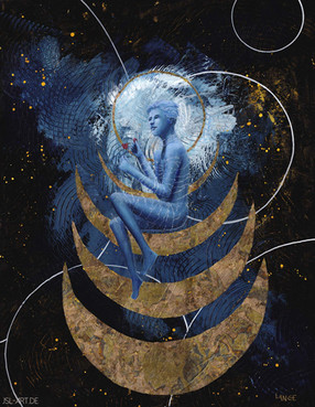 One sometimes has these ideas that one's skills can't represent yet; I am revisiting an idea I already painted years ago but it didn't hold up to my imagination then. Sleep is a welcoming and forgiving - if relentless - thing, catching us as if with many arms to lull and hold us.I modelled the six-armed one in 3D to help with the cast shadows. It's one of my most ambitious paintings to date, partly because I needed it to look exactly like I wanted when normally I go with the flow to some extent, but here I cringed every time something didn't sit perfectly right from the start